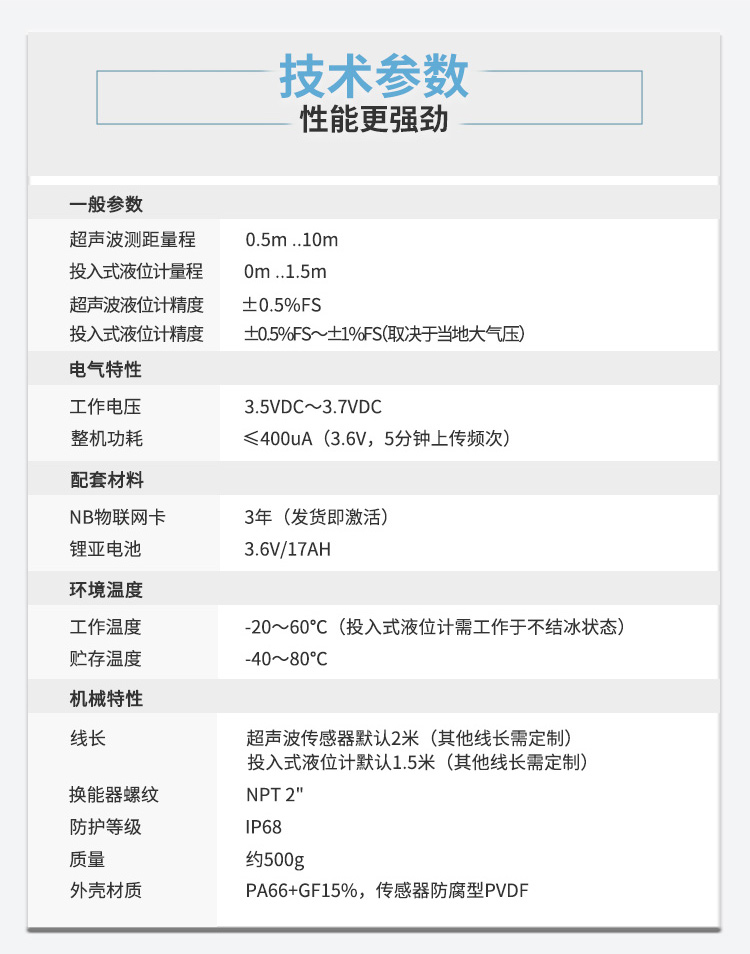 應(yīng)用:應(yīng)用于城市窨井水位監(jiān)測, 超低功耗