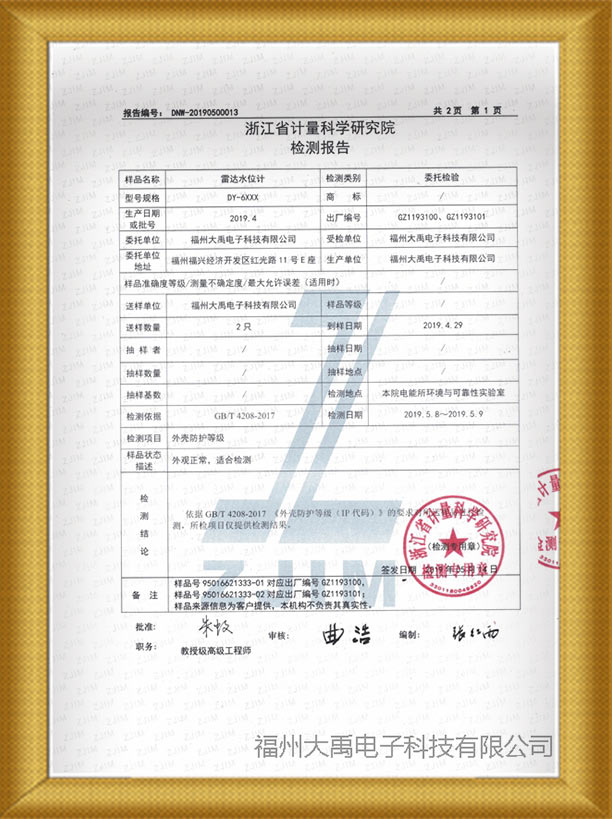 雷達(dá)水位計(jì)IP67防護(hù)等級(jí)檢測(cè)報(bào)告